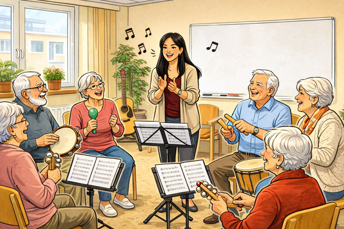 Hier einige Aspekte, die Seniorinnen und Senioren durch gemeinsames Singen und das Arbeiten mit Rhythmusgeräten lernen bzw. nachhaltig verbessern: